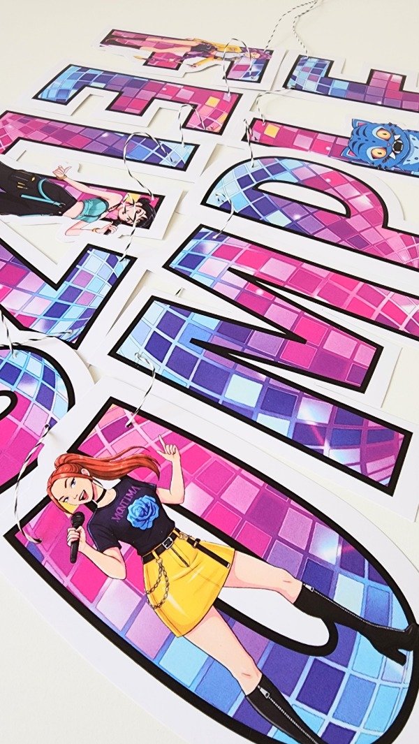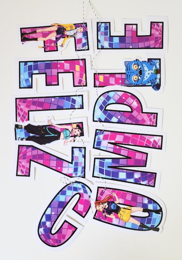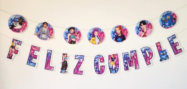 Set de Guirnalda Feliz Cumple mas Banderin de la K Pop Demon Hunters Incluye:
