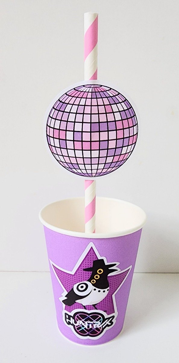 Set x 5 Vasos descartables de Polipapel mas 5 sorbetes con decoracion de Carton.